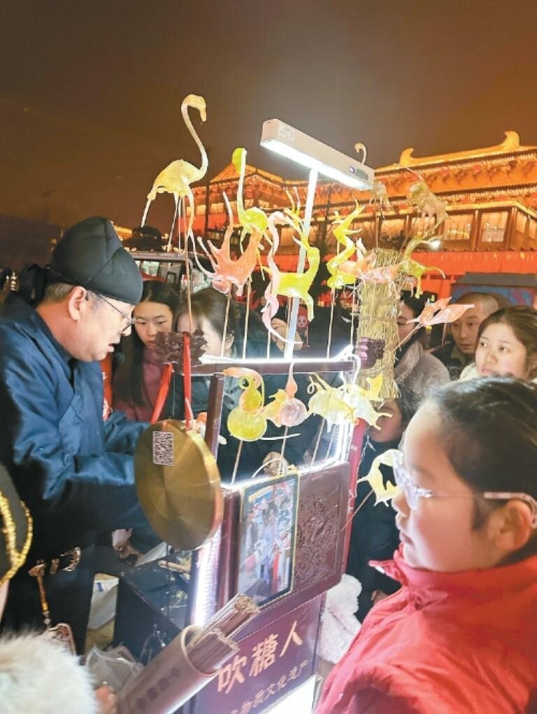 特色項(xiàng)目吹糖人吸引市民駐足。
