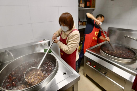 “日行一善粥屋”熬制臘八粥傳遞溫暖關(guān)愛。西安報業(yè)全媒體記者 王旭東 攝