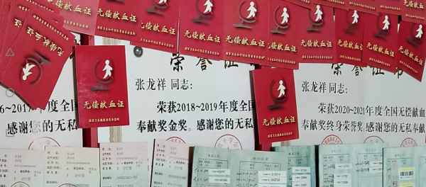 從第1次到第201次,從200毫升到7.76萬毫升……張龍祥悉心收藏著每一次的“無償獻(xiàn)血證”,這不僅記錄了他每一次的無私奉獻(xiàn),更見證了一位普通村民十余年的堅(jiān)守與熱愛。