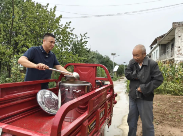 龐富強(qiáng)給村上老人盛飯 圖源:強(qiáng)強(qiáng)村支書視頻號(hào)