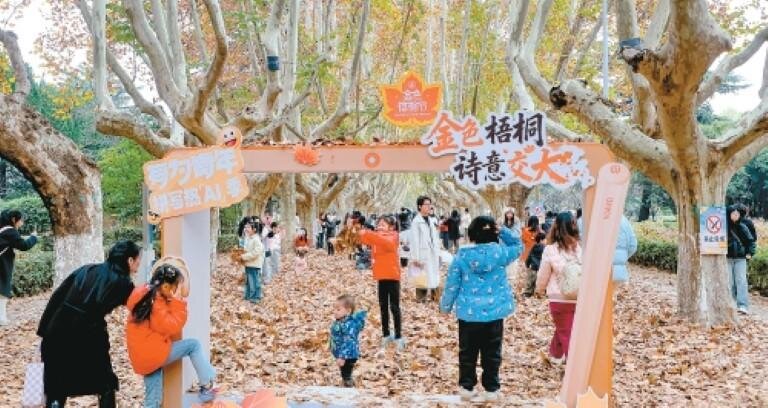 從落葉留言板上密密的秋日心語(yǔ),綿延數(shù)百米金色的梧桐大道,到以古典詩(shī)句裝點(diǎn)的“梧桐詩(shī)語(yǔ)”亞克力板……每當(dāng)深秋季節(jié),西安交通大學(xué)(以下簡(jiǎn)稱西安交大)的金色梧桐節(jié)也如約而至,讓每一位漫步其中的人都能感受到秋日的浪漫與溫暖。11月22日,西安交大梧桐道上,金葉紛飛,詩(shī)語(yǔ)懸掛,這里不僅是秋日的風(fēng)景,更是美育的生動(dòng)課堂,讓學(xué)子在金色浪漫中陶冶性情、塑造人格。始于2019年的西安交大金色梧桐節(jié),如今已是校園年度標(biāo)志性文化盛事。