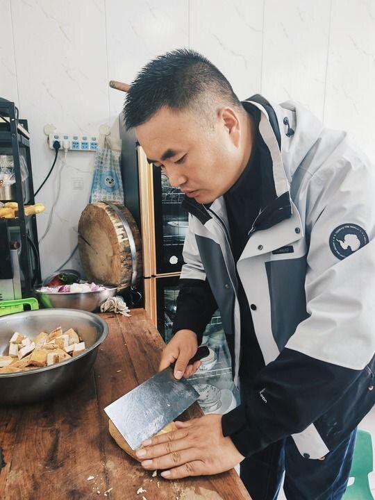藍田是陜西有名的“勺勺客(關(guān)中方言:廚師)之鄉(xiāng)”,當?shù)厝顺Q浴爸灰盁煹牡胤?,就會有藍田人”。1986年出生的龐富強,初中畢業(yè)后便跟隨故鄉(xiāng)的勺勺客大軍外出學藝,此后開了多年飯店,做飯是他的看家手藝。老人們更習慣吃面食,龐富強就多做臊子面、旗花面、燴麻食等,肉燉得爛,面煮得軟,油、鹽放得少。