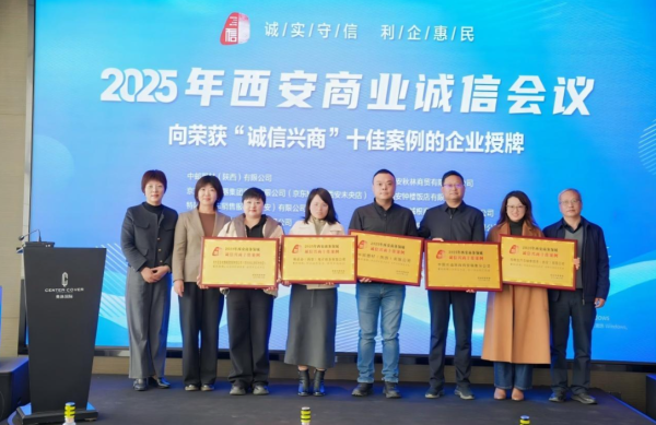 會(huì)議現(xiàn)場(chǎng),西安市商務(wù)局流通業(yè)發(fā)展處相關(guān)負(fù)責(zé)人宣讀了2025年度西安市“誠信興商”典型案例評(píng)選結(jié)果,中郵器材(陜西)有限公司、京東五星電器集團(tuán)西安有限公司(京東MALL西安未央店)等10家企業(yè)獲評(píng)“十佳案例”,西安糧油批發(fā)交易市場(chǎng)有限公司、陜西國蜂大健康產(chǎn)業(yè)有限公司等20家企業(yè)獲評(píng)“優(yōu)秀案例”。這些來自零售、能源、酒店、科技、餐飲、外貿(mào)等不同領(lǐng)域的典型案例,生動(dòng)展現(xiàn)了西安商貿(mào)企業(yè)將誠信理念深度融入經(jīng)營管理的成功實(shí)踐,為全市企業(yè)樹立了可學(xué)可鑒的標(biāo)桿。