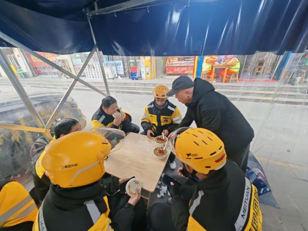 12月23日上午,位于蓮湖區(qū)北關(guān)街道自強(qiáng)社區(qū)內(nèi)的蘭家糊辣湯店,一場暖“新”免費(fèi)增湯活動熱鬧舉行。30名環(huán)衛(wèi)工人和20名外賣騎手陸續(xù)走進(jìn)店里,接過一碗碗香氣撲鼻的胡辣湯,圍坐在桌前,邊喝邊聊,臉上洋溢著笑容。