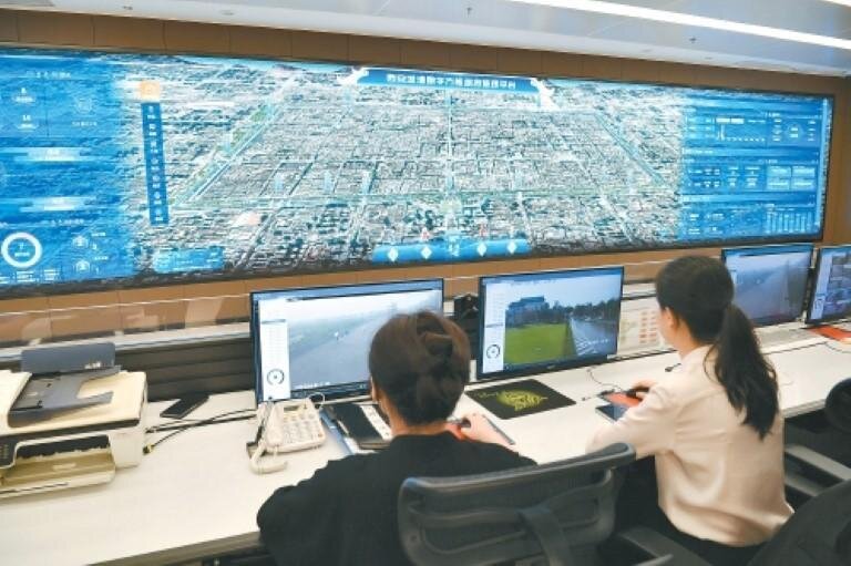 工作人員通過“西安城墻數(shù)字方艙綜合管理平臺(tái)”開展工作(2025年9月10日攝)。(新華社記者 邵瑞 攝)