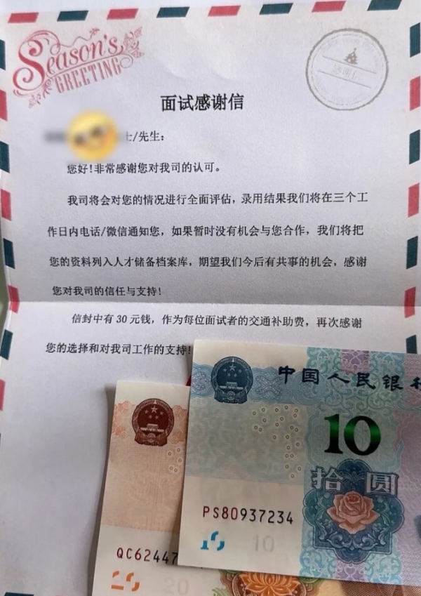 近日,一則西安傳媒公司為面試者送上感謝信和30元交通補(bǔ)助的消息引發(fā)全網(wǎng)熱議。這家成立于2025年的企業(yè),堅持為每一位面試者提供交通補(bǔ)貼,無論是否錄用,均會收到公司的一封感謝信和30元交通補(bǔ)助。