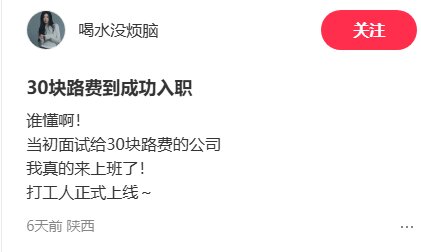 從外地趕來面試的女子感慨,30元雖少,卻是對求職者的認(rèn)可,這份人文關(guān)懷讓她對西安這座城市好感倍增。