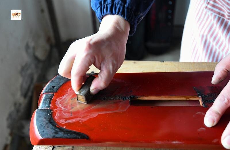 程剛正在打磨琴面。