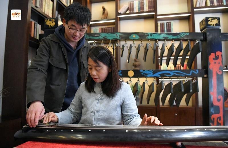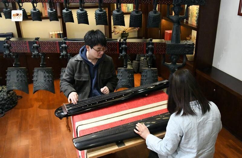 程剛指導(dǎo)學(xué)員彈奏古琴。