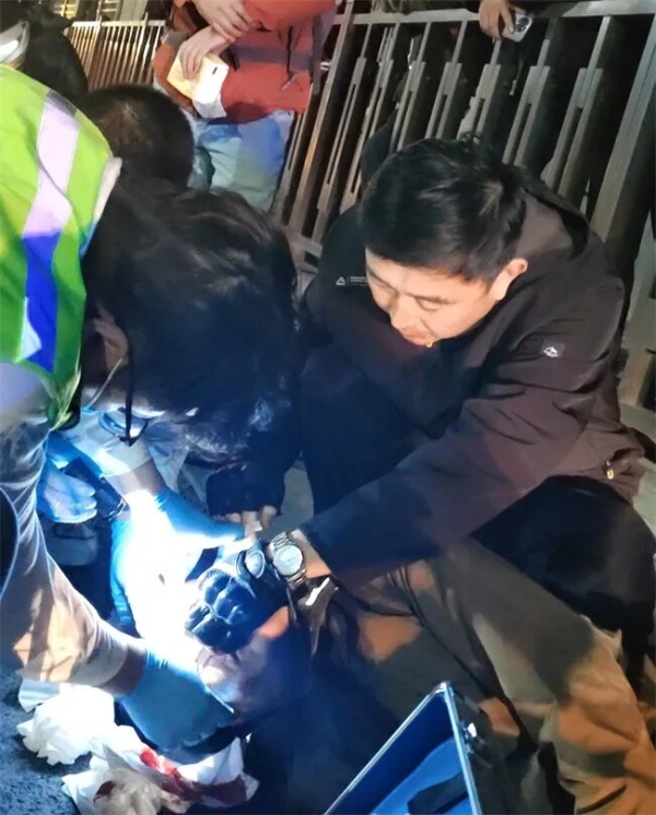 等待救援的過程中,傷者傷口依舊持續(xù)滲血,韓紅輝隨身帶的紙巾很快用盡。周圍群眾被他的勇敢和善意打動,紛紛主動遞來紙巾,眾人攜手展開救助。韓紅輝一邊持續(xù)為傷者按壓止血,一邊冷靜拿出手機,第一時間撥通120急救電話和122交通事故報警電話,清晰說明事發(fā)地點、傷者傷情,為救援爭取最快響應(yīng)時間。