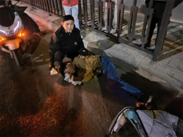 彼時,現(xiàn)場已有幾名路過群眾駐足查看,可大家要么缺乏專業(yè)急救知識,要么擔(dān)心貿(mào)然施救引發(fā)不必要的糾紛,都不敢輕易上前觸碰傷者。生死關(guān)頭,韓紅輝沒有絲毫猶豫,也沒有半點顧慮,立刻蹲下身仔細查看傷者狀態(tài)。三月末的西安,夜晚寒意未散,地面冰涼刺骨,他第一時間摘下自己隨身攜帶的棉帽,輕輕墊在傷者頭部下方,隔絕冰冷地面,避免傷者二次受涼;隨后拿出隨身紙巾,小心翼翼地為傷者按壓頭部傷口,精準(zhǔn)止血,動作輕柔又沉穩(wěn)。
