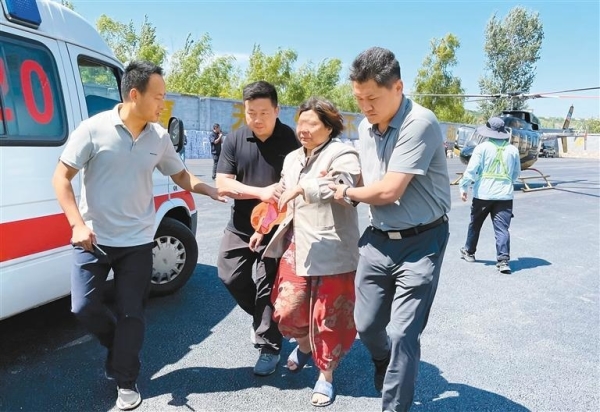 救護車待命,救援人員待命,救援直升機要回來了,上面有3名傷員……8月21日11時許,命令傳來,藍田縣九間房鎮(zhèn)公王中學的操場上,在直升機轟鳴聲中,120急救車立即將落地的3名受傷群眾送往醫(yī)院救治。當天,救援直升機還成功轉運了一名孕婦。陜西省應急救援與航空護林中心負責人王罡說,3名傷員是從九間房鎮(zhèn)葫蘆岔村救下來的。他介紹,8月20日一大早,接到救災命令后,陜西省應急救援與航空護林中心立即協(xié)調4架救援直升機趕到藍田九間房鎮(zhèn)救災現場,公王中學的操場變成了直升機停機坪。當天4架救援直升機共飛行25架次,向地面道路損毀的救援現場投送純凈水80余件,食品140余件,運送救援人員10名,空中偵查失聯(lián)村莊9個。8月21日起,救援直升機主要在道路損毀嚴重、受災嚴重的村莊投運救災物資,轉運病人。