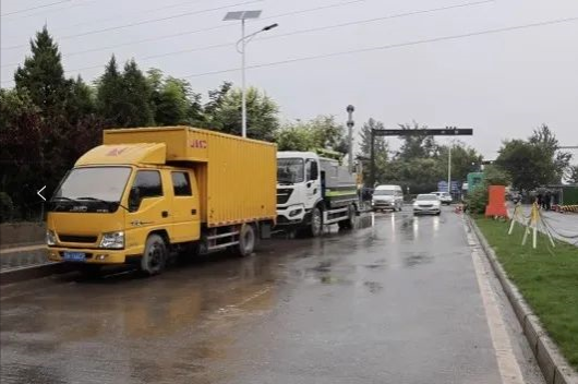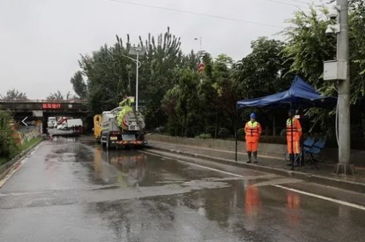 在羅高路和北三環(huán)十字,大型發(fā)電車、清障車等機械設(shè)備隨時待命;身著反光背心的工作人員,在現(xiàn)場維持秩序,指揮車輛緩慢有序通行;兩臺大功率抽水泵已準備就緒,隨時準備工作。