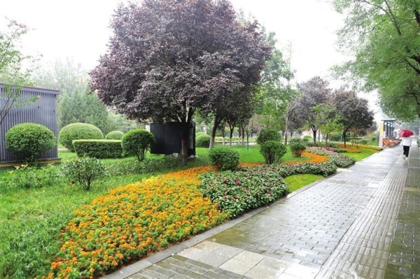 經(jīng)開區(qū)以未央路為軸線,打造“絲路花語”景觀,談古論今,以古絲綢之路與今一帶一路的回首與展望,展現(xiàn)形態(tài)豐富多樣、層次錯落有致、空間疏密有度的特色景觀。