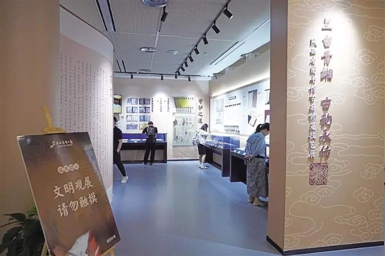 6月22日,觀眾在省圖書館高新館區(qū)參觀古籍修復(fù)技藝展。