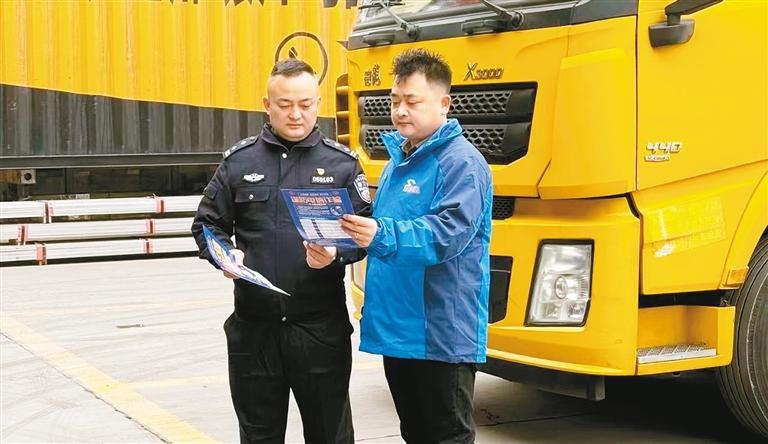 3月5日上午,張仕禹(左)在聚盟物流園進(jìn)行反詐宣傳工作。 (受訪者供圖)