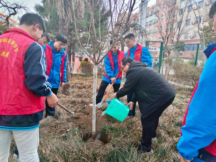 西安市田家炳中學(xué)團(tuán)委組織開展“綠蔭樹下話雷鋒 暖陽心中種德行”植樹節(jié)活動,團(tuán)員青年以小組形式,在老師指導(dǎo)下完成植樹任務(wù),提高了他們的綠化意識和實(shí)踐能力。
