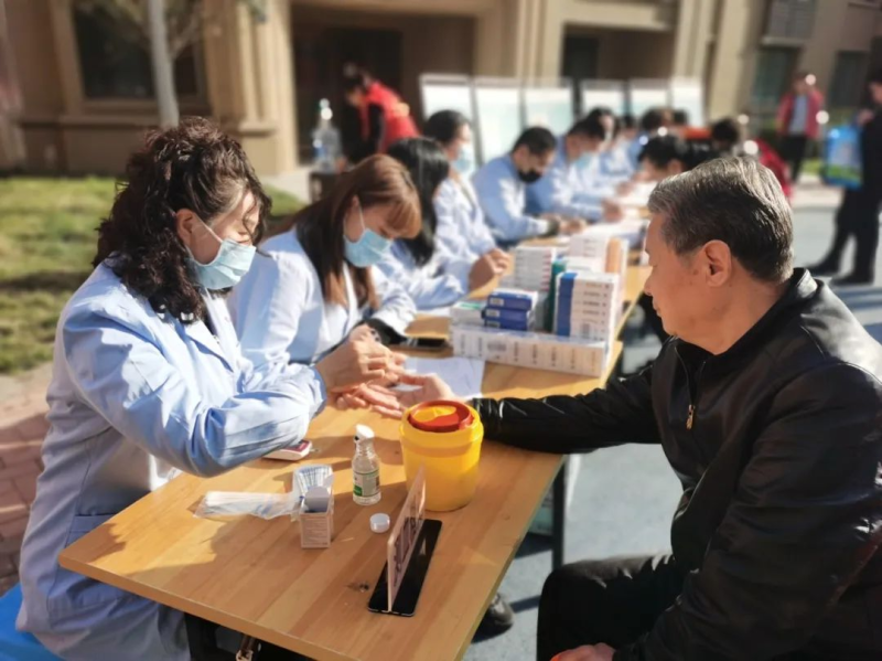 活動現(xiàn)場,參加義診的居民絡(luò)繹不絕,社區(qū)工作者引導(dǎo)居民排隊登記就診,醫(yī)務(wù)工作者一邊為老人科普健康知識,一邊為前來咨詢的居民提供測量血壓、血糖等服務(wù)。義診中,醫(yī)務(wù)工作者發(fā)現(xiàn)前來量血壓、測血糖的居民以中老年朋友居多,針對這些特點,醫(yī)護(hù)人員給予指導(dǎo)性的建議,提醒他們要科學(xué)飲食,樹立健康觀念、培養(yǎng)健康行為。