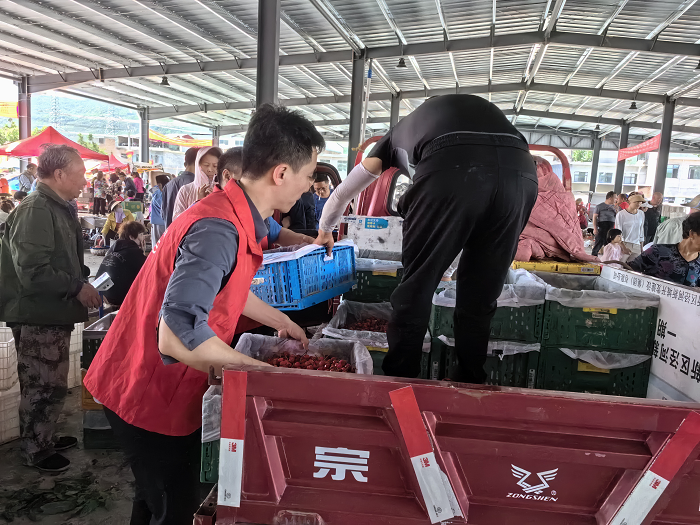 “國(guó)色天香尤未盡,又看櫻桃一樹(shù)紅。”今年櫻桃喜獲豐收。藍(lán)田縣洩湖鎮(zhèn)100多位獨(dú)居老年果農(nóng)面臨櫻桃運(yùn)輸、儲(chǔ)存、銷售難問(wèn)題。為切實(shí)解決老年果農(nóng)燃眉之急,幫助果農(nóng)順利渡過(guò)難關(guān),在未央?yún)^(qū)益人行志愿者協(xié)會(huì)的組織下,志愿者們來(lái)到藍(lán)田縣櫻桃交易市場(chǎng)幫助獨(dú)居老人們搬運(yùn)采摘出來(lái)的櫻桃。志愿者將采摘下的櫻桃進(jìn)行分揀、裝籃,在農(nóng)貿(mào)市場(chǎng)幫助獨(dú)居老年果農(nóng)進(jìn)行銷售,在運(yùn)輸工具有限的條件下,大家齊心協(xié)力,將櫻桃用籮筐一筐一筐用人力將櫻桃運(yùn)輸?shù)绞圪u點(diǎn)、運(yùn)輸車、定點(diǎn)攤位上。